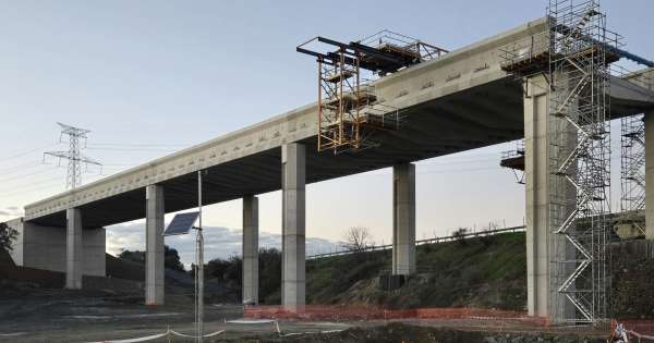 High speed railway viaduct over EX-A1 and EX-108 highways