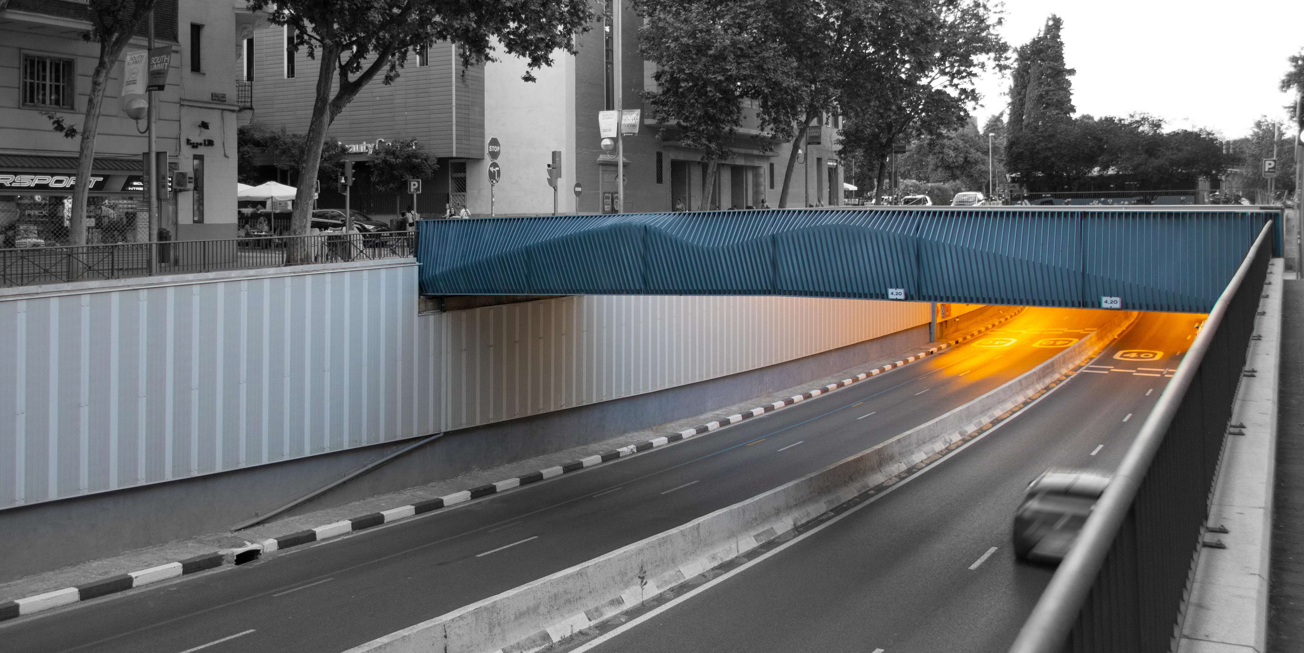 The pedestrian and cycling bridge links the streets Ayala and Marqués de Zafra, over the underpass in Manuel Becerra square. FHECOR Ingenieros Consultores designed this footbridge and drafted the Construction Project.