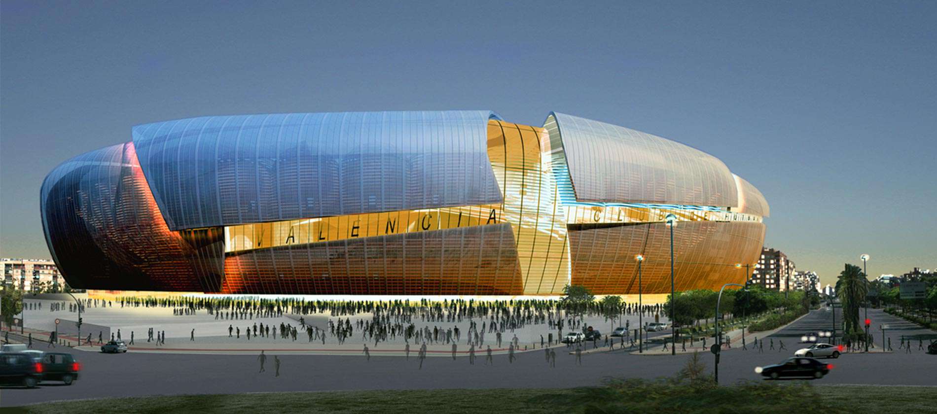The stadium is located in the Avenida de las Cortes Valencianas and can hold around 75,000 spectators. It is elliptical in shape and has car parking below grade and three upper stand levels.
