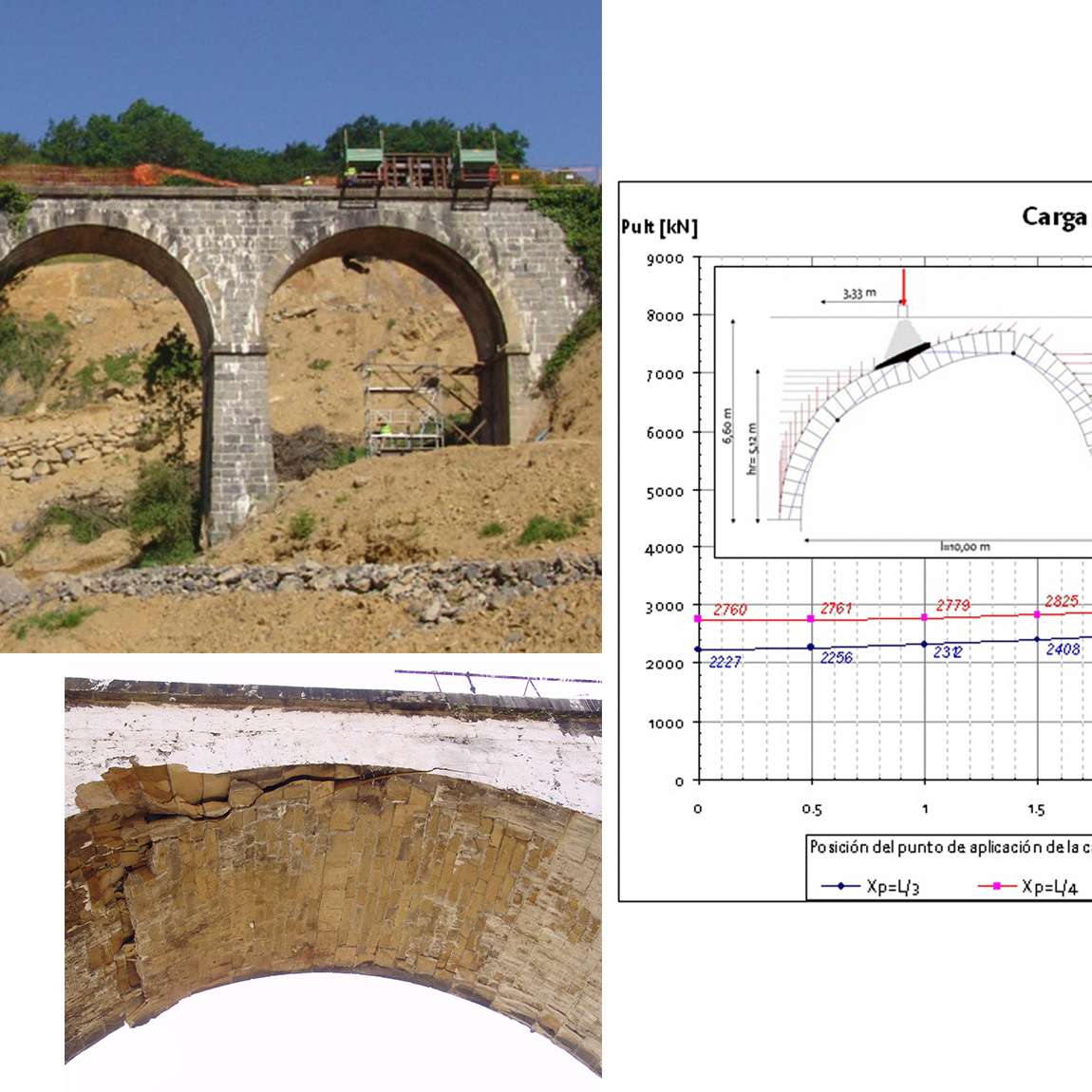 The estimation of fracture load, previous to the test, was carried out using data obtained from the height of the cemented fill obtained by a series of inspection excavations in the adjacent flood arches. Internally developed computer tools were employed for the state limit analysis with tensile estimations. The values obtained compared satisfactorily with the test results.