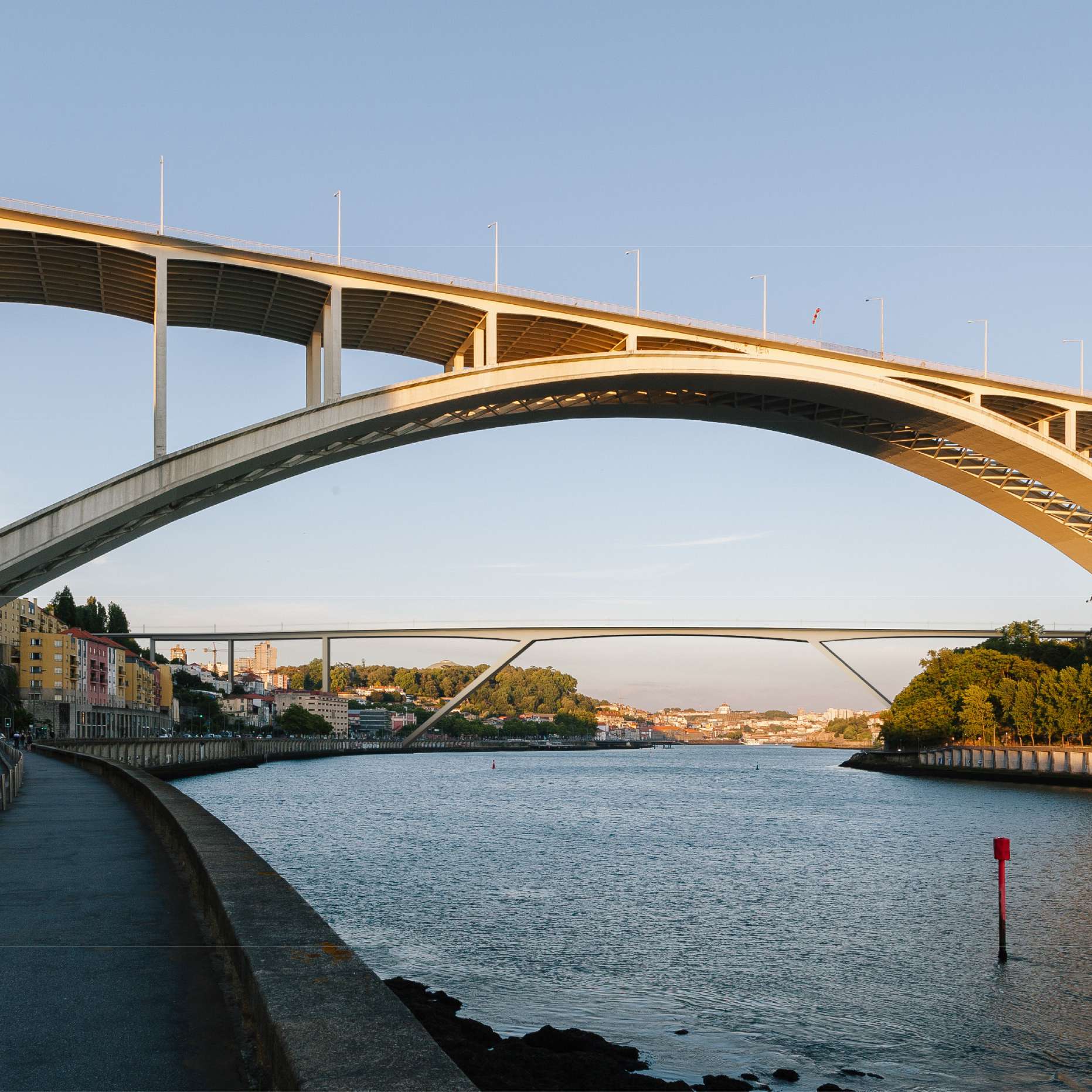 This bridge is the solution proposed in a competition of ideas to materialize the crossing over the Duero of the metro line that will connect the stations of Campo Alegre in Porto and Candal in Gaia. The new bridge will be built very close to the Arrábida bridge, designed by Edgar Cardoso and classified as a national monument of Portugal.